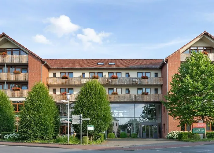 A szállás naponta büfé reggelivel szolgál. A Preußisch Oldendorf városi hotelben az Alte Schule étterem található.